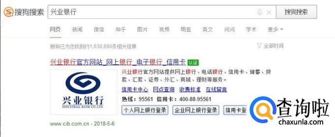 使用搜狗浏览器搜索兴业银行,记住一定要进入官网,个人信息很重要。