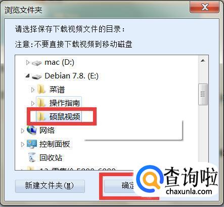 接着点击你要保存视频的文件夹,或者通过新建文件夹,然后点击确定。