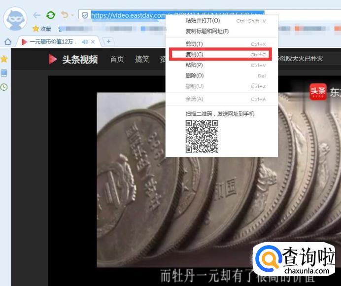 接着找到你要下载链接的视频,右击鼠标,点击复制。
