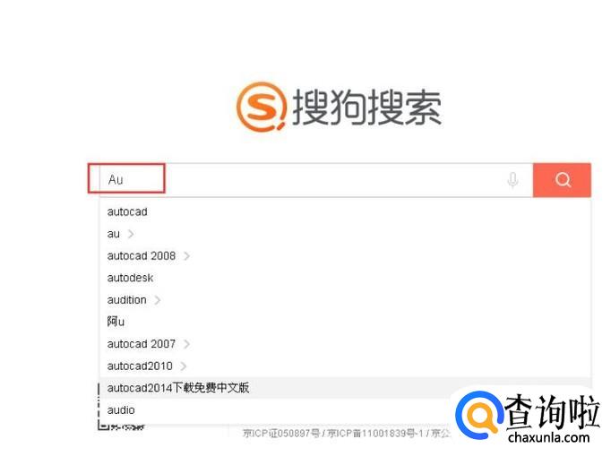 打开搜狗浏览器,输入“Au”,点击搜索。
