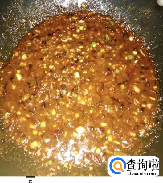 热锅放油,油热后放入干辣椒,闻到香后,放入豆瓣酱。