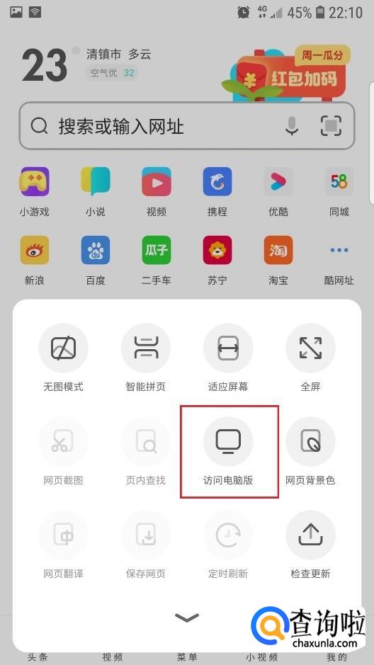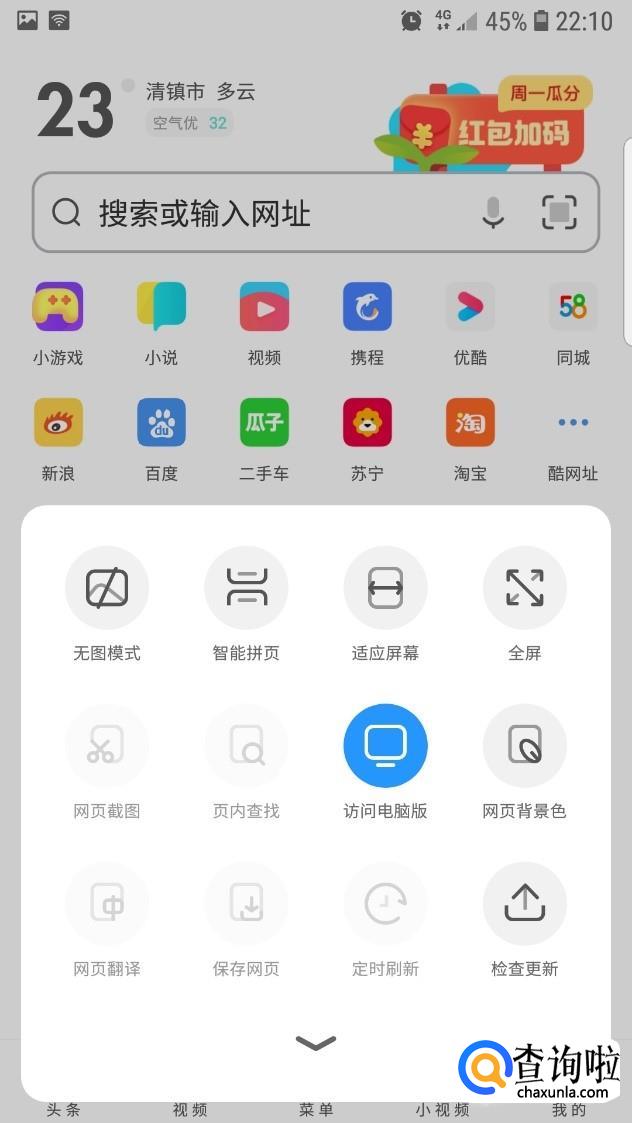 这样设置好后,我们就把浏览器设置为电脑版了。