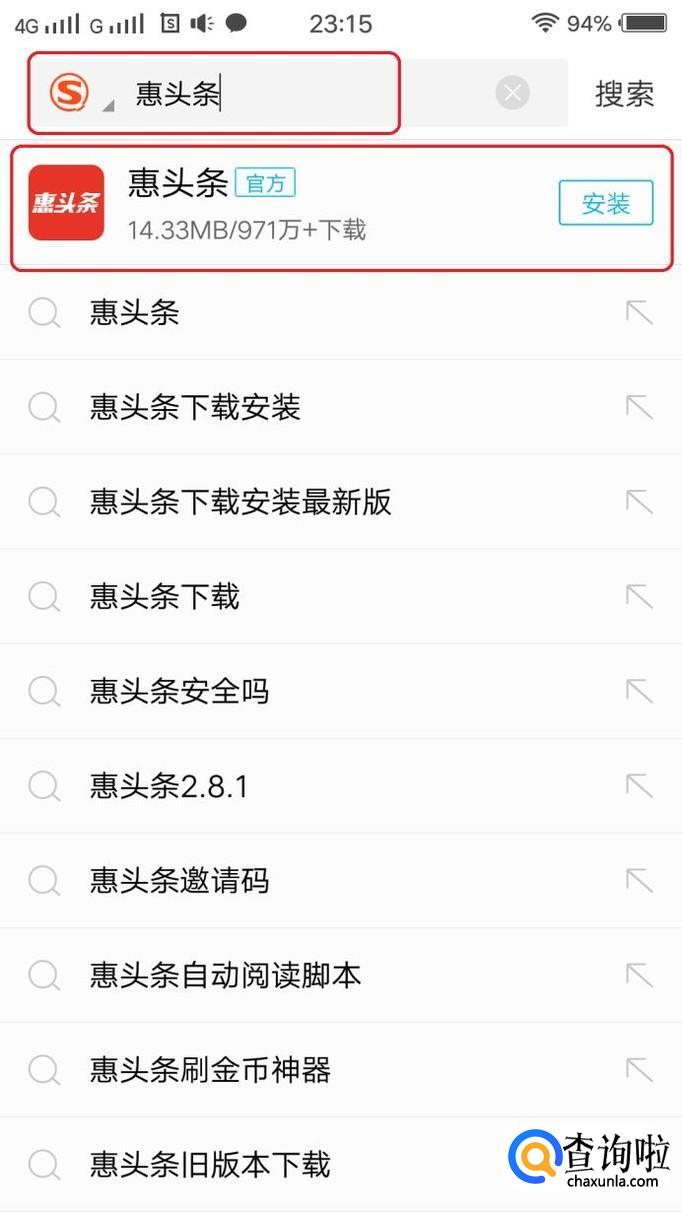 首先,手机浏览器搜索下载“惠头条”,并安装到自己的手机上。