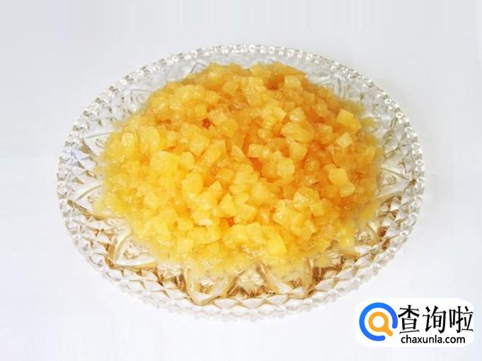 首先,先把苹果去掉皮,去掉皮之后更好,然后把苹果肉切成小丁。然后把苹果丁倒入糯米粉和面粉之中。糯米粉和面粉的比例大概是3:1。