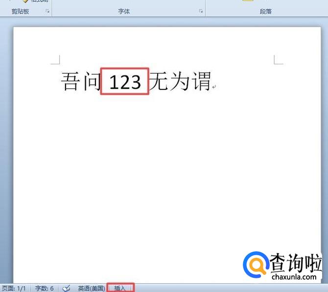 首先,我们打开我们的电脑,然后我们打开我们电脑上面的word,之后我们在文档中输入一些文字,然后我们将输入符放在文字的中间,此时我们可以看到下方显示的是插入,我们可以进行输入一些数字;