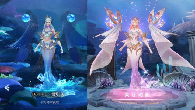 许多玩家都觉得海洋之心的效果不比荣耀典藏皮肤神谕差,其中最大的理由就是海洋之心创意优秀。武则天的大袖子就是它的锚点,但在海洋之心当中将其变成了背后的大翅膀。