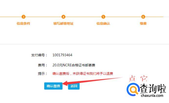 点击“确认缴费”。