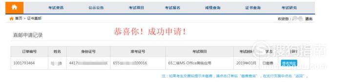 出现订单编号,说明已成功申请。