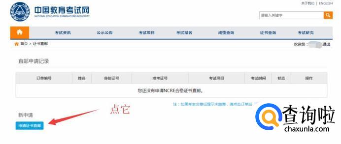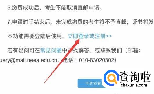 电脑打开 https://zszy.neea.edu.cn/ ,认真阅读证书直邮的注意事项,一个字都不要漏!阅读完直邮注意事项后,点击“申请/查看证书直邮”,如下图:
