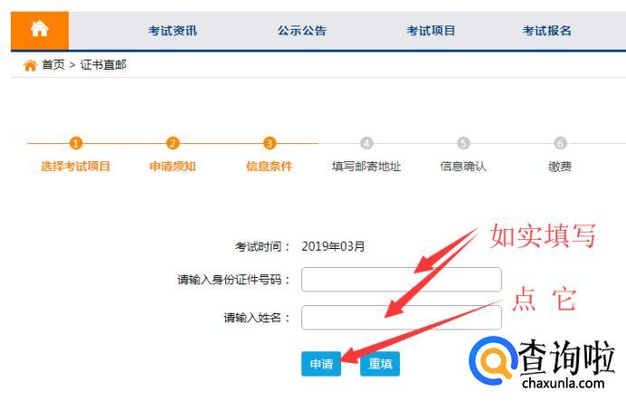输入身份证号码和姓名,然后点击“申请”。