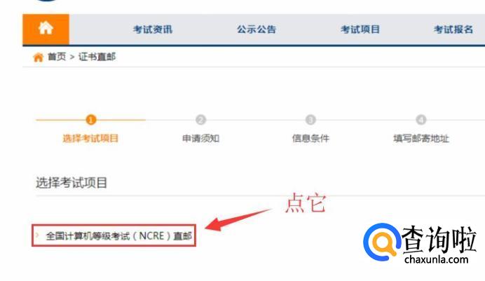 点击“全国计算机等级考试(NCRE)直邮”。