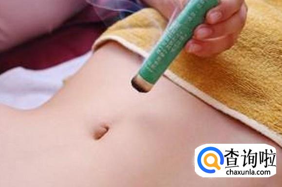温和灸:这个方法和上一种还是有一点区别的,我们把艾条点燃以后放在离肚脐一寸的地方,让我们自己感到温热但是不会有灼痛感。