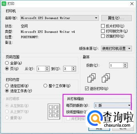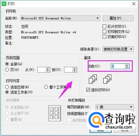 我们还可以设置打印版数,如图。