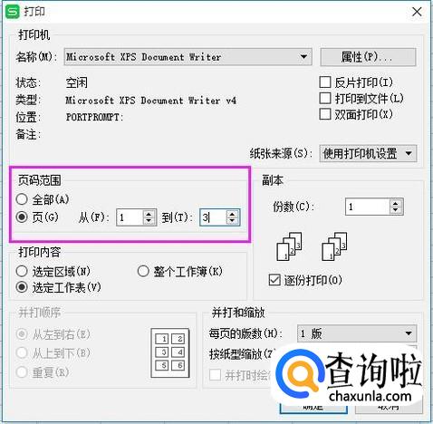 在打印里面,我们接着就可以设置打印页数,如图。