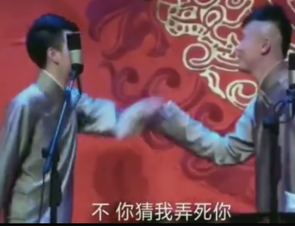 20181104期哈尔滨《铃铛谱》中,杨九郎先是说着熬鹰梗,这时张云雷已经开始憋笑,但还攥着拳头放嘴边忍着,结果杨九郎祭出了终极大杀器——知道我妈那个硅胶腿吧,此话一出,张云雷彻底笑场,咬着嘴唇就趴幕布上了,笑到脸酸,笑到叉腰,笑到颤抖,冲着九郎:“我想杀了你…你给人好好说相声。”