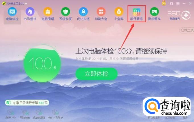 首先,打开360安全卫士,如果没有360安全卫士,可以到360官网进行下载,点击软件管家。