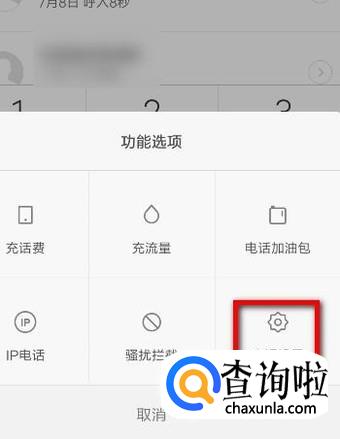 调出其功能选项面板。在此面板中,手指再轻点一下:电话设置