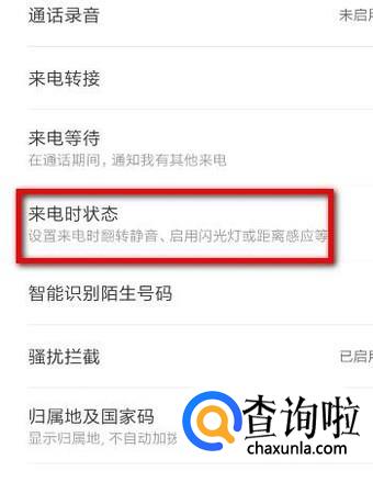 转到电话设置界面,在这界面中,找到并点击:来电时状态