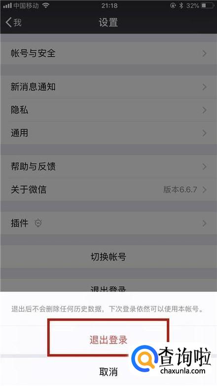 然后点击退出登录,如下图所示