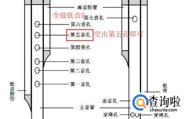 全做低音5,只需要将第六孔空出来不按,即是4,注意吹时控制气流稍强一点即可吹响;