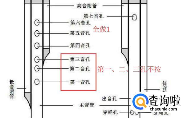 全做1时,需要将第一、二、三个孔都空出来不按,吹出来的就是4;
