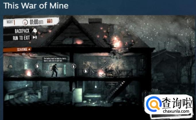 This War of Mine(我的战争):一款发行于2014年的关于战争的经典游戏,steam百分之95好评。游戏的主角并不是士兵,而是平民,游戏的目标是让玩家在战争中活下来,为此玩家需要去拾荒,玩家可能会遇到敌人的狙击手,遇到别的幸存者,如何应对他们需要玩家自己决定。这款游戏的成功之处在于以全新的角度来刻画战争,让玩家体验战争,体验战争带来的灾难,最主要的是体验人性,感悟人性。