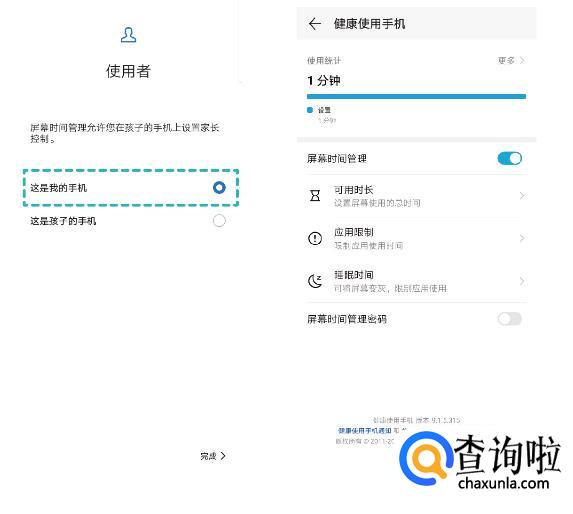 健康使用手机提供了【这是我的手机】和【这是孩子的手机】两种模式。两种模式管控力度不同。这是我的手机模式管控相对轻松,以提醒为主;这是孩子的手机模式管控则相对严格.