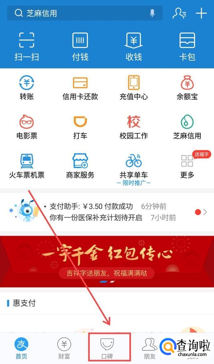 首先我们应该在我们的手机上下载一个“口碑”APP,我们可以在手机应用中心中下载,也可以在支付宝里进行下载。如果你想通过支付宝进行下载的话,你可以在支付宝页面最下面的中间找到“口碑”的下载路径。