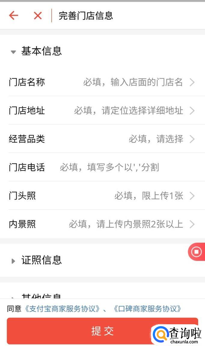 输入你的相关信息,点击“提交”即可,等待口碑官方审核通过后即可成为口碑商家。