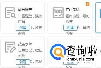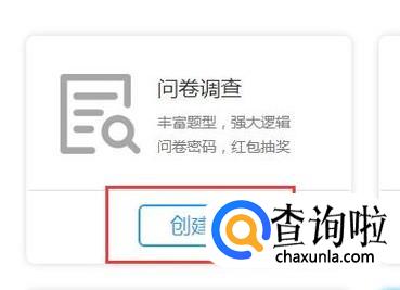因为问卷调查是比较常用的,所以我们在这里就直接以问卷调查为例,选择问卷调查点击创建。