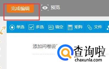 其他题型的操作和单选题大同小异,所以在这里就不一一详尽了。当我们把问卷设置好之后,就可以选择完成编辑,然后发布我们的问卷了。