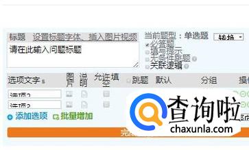 然后在我就可以开始设计题目了,一般是单选,多选为主,我们可以在工具栏选择自己需要的题型格式。