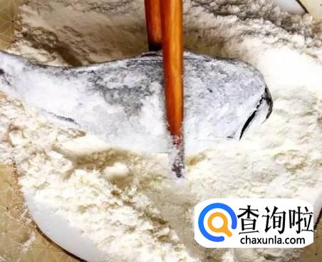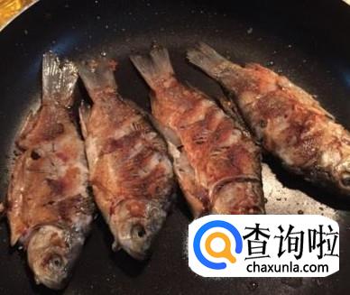 把小鲫鱼在面粉里打个滚,然后放在烧热的油锅中煎至两面金黄色捞出。