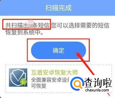 搜索完毕,会出现你删除了多少短信,并询问你是否需要还原