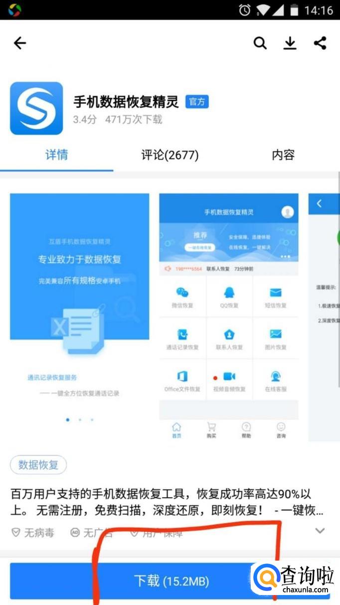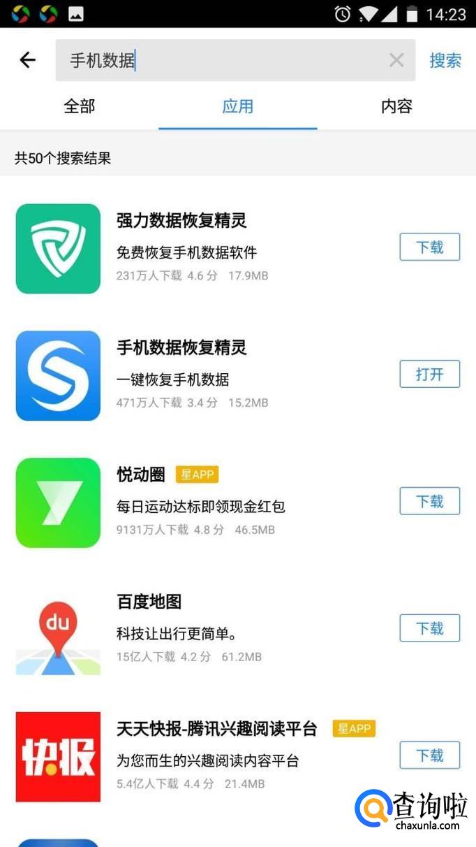 首先,我们可以在手机自带的应用商店里面,点击搜索“手机数据恢复”