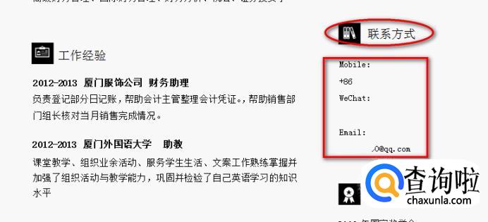然后再填写一下自己的联系方式,要正确且准确地填写,主要包括个人手机号码、微信和邮箱等等。
