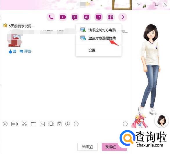 点击一下那个图标,接着就会看到邀请对方远程协助的选项,点击一下即可发起。