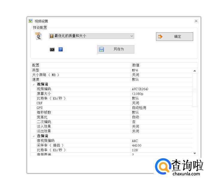还可以调整转换视频文件的质量大小,点击如下图的“配置”。