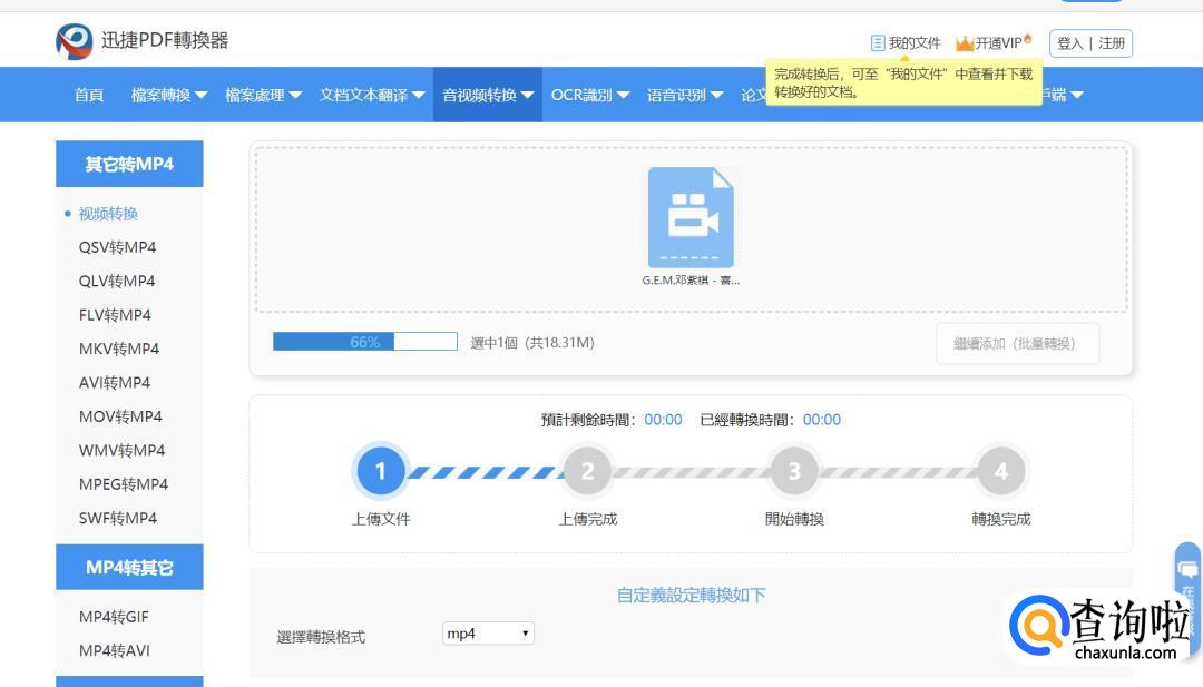 等待一段时间,等待视频转换完成。