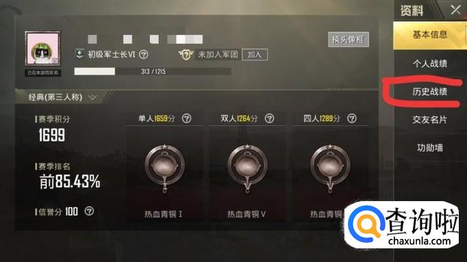 进入个人资料之后,选择历史战绩,再选择想要举报玩家的游戏场次。