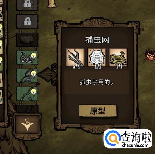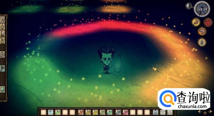 然后造一个捕虫网,找到有萤火虫的地方去抓萤火虫,注意晚上才有哦,而且最好在旁边修个小火堆,不然要被查理打,如图是开了mod的,正常的是绿色的。