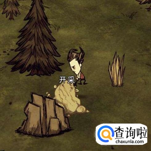 然后去开采金矿,当然如果之前有的话可以忽略,这种带有金色条纹的石头才产金子。