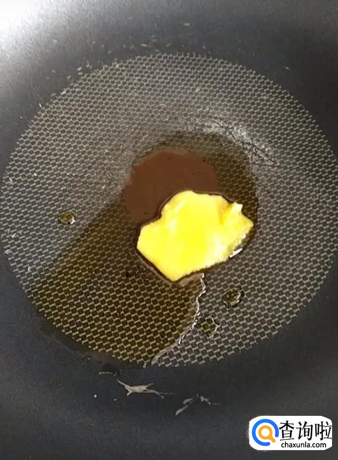 然后我们将牛排肉切成条,在锅中放入一块黄油,融化以后放入切好的牛肉,炒出香味