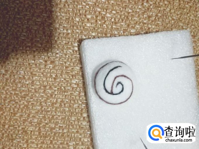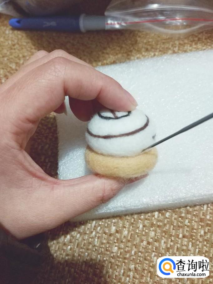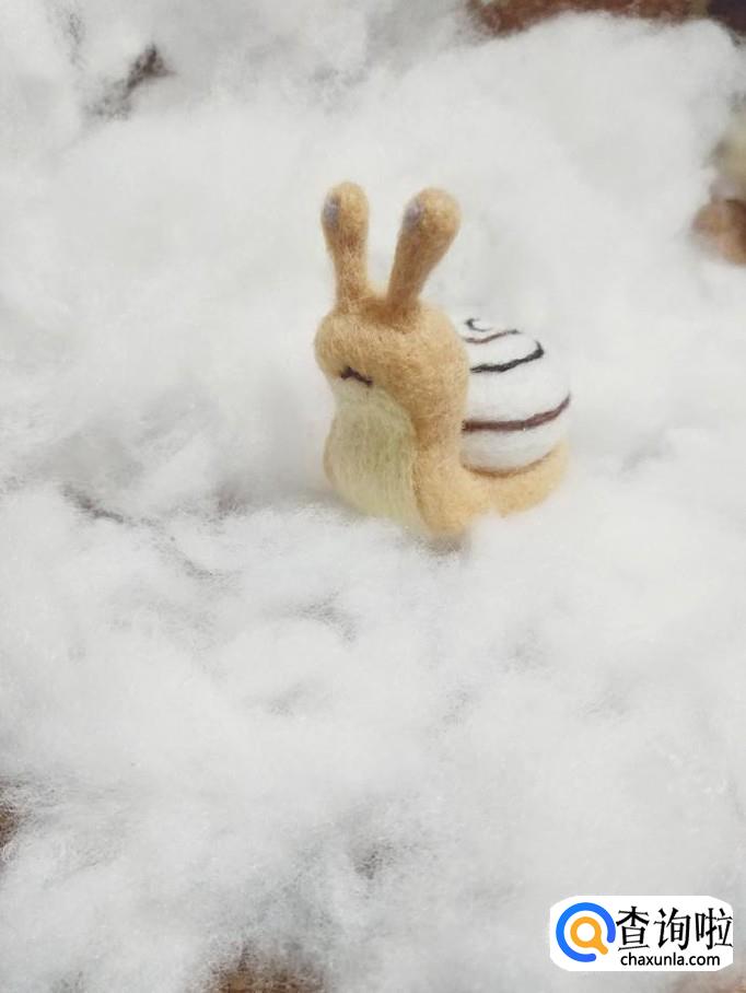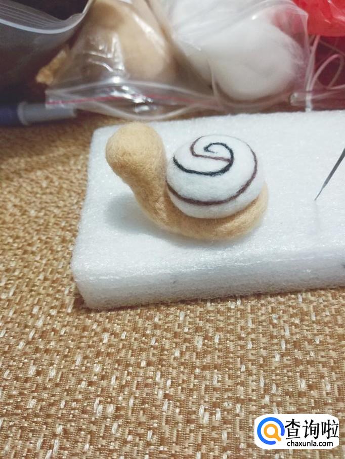 再取褐色的羊毛,戳蜗牛壳上的花纹,蜗牛壳就做好了。