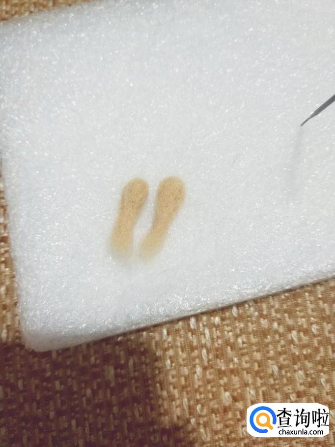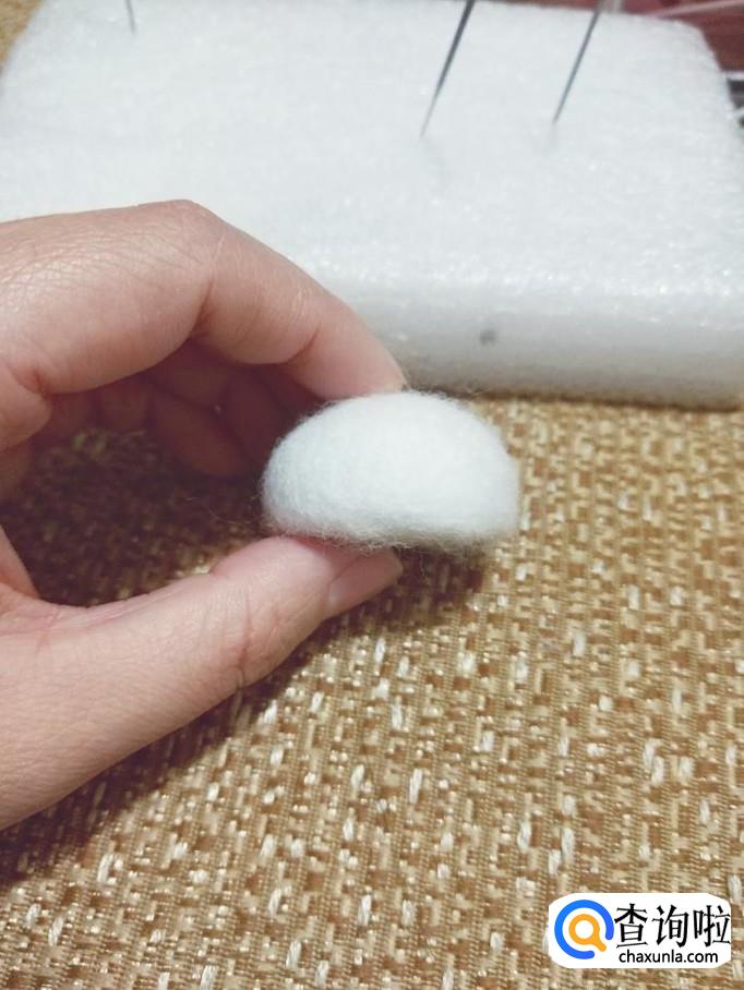 取白色羊毛,戳成半圆形状,稍微扁一点。