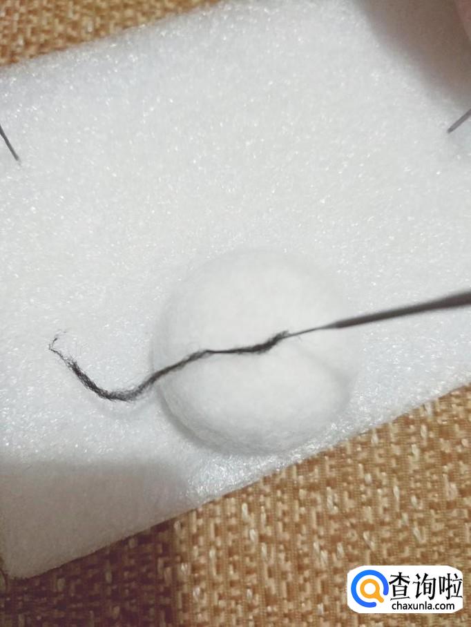 取灰色羊毛,用手揉成灰色的小团,戳出眼球部分。
