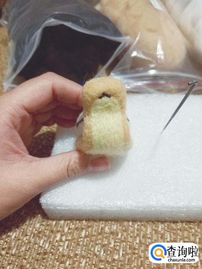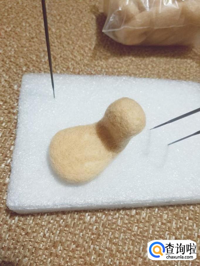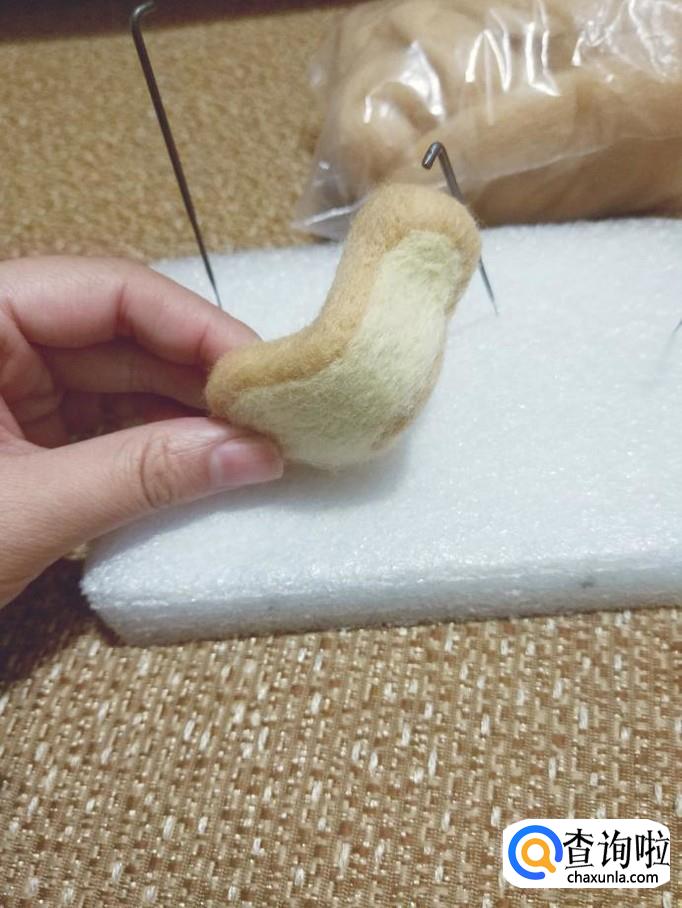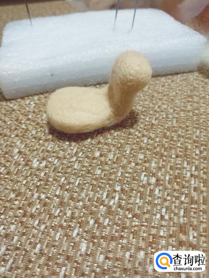 用奶茶色羊毛戳出蜗牛身体的形状,制作的时候可以找出蜗牛的图片,对比制作。
