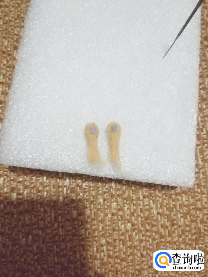 取奶茶色羊毛,戳出蜗牛的眼睛轮廓。