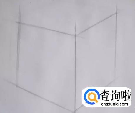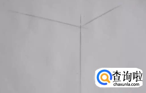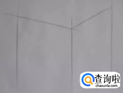 第三步:注意棱与水平线的夹角越大,则画短些,反之则画长些,以此来确定好左右两根竖线的位置。