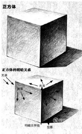 正方体与长方体是常见的几何体,正方体是十二边相等的六面体,长方体则是正方体的加长版,通过观察分析正方体与长方体的每个面,可以掌握物体的明暗关系。